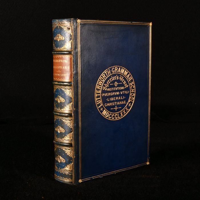 A children's retelling of Shakespeare's major comedies and tragedies, by famed sibling poets, Charles and Mary Lamb. A 1903 edition of this work, in a full calf school prize binding, with an illustrated frontispiece. View our many children's books here.